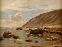 Dücker, Eugen 1841 Arensburg - 1916 Düsseldorf Küstenlandschaft. Signiert. Öl/Lwd./doubl., 36 x 47 cm