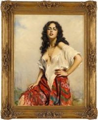 Szankowski, Boleslaw von 1873 Warschau - 1953 Tegernsee Schwarzhaarige Schönheit. Signiert. Öl/Lwd., 95 x 76 cm