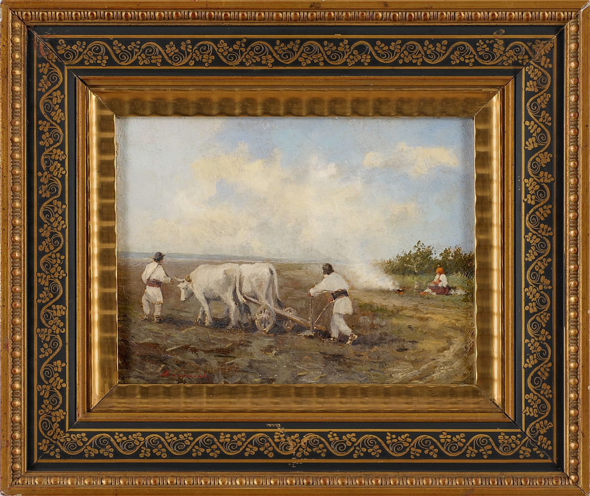 Undeutlich signiert Feldarbeiter. Signiert. Öl/Malk., 19 x 25 cm