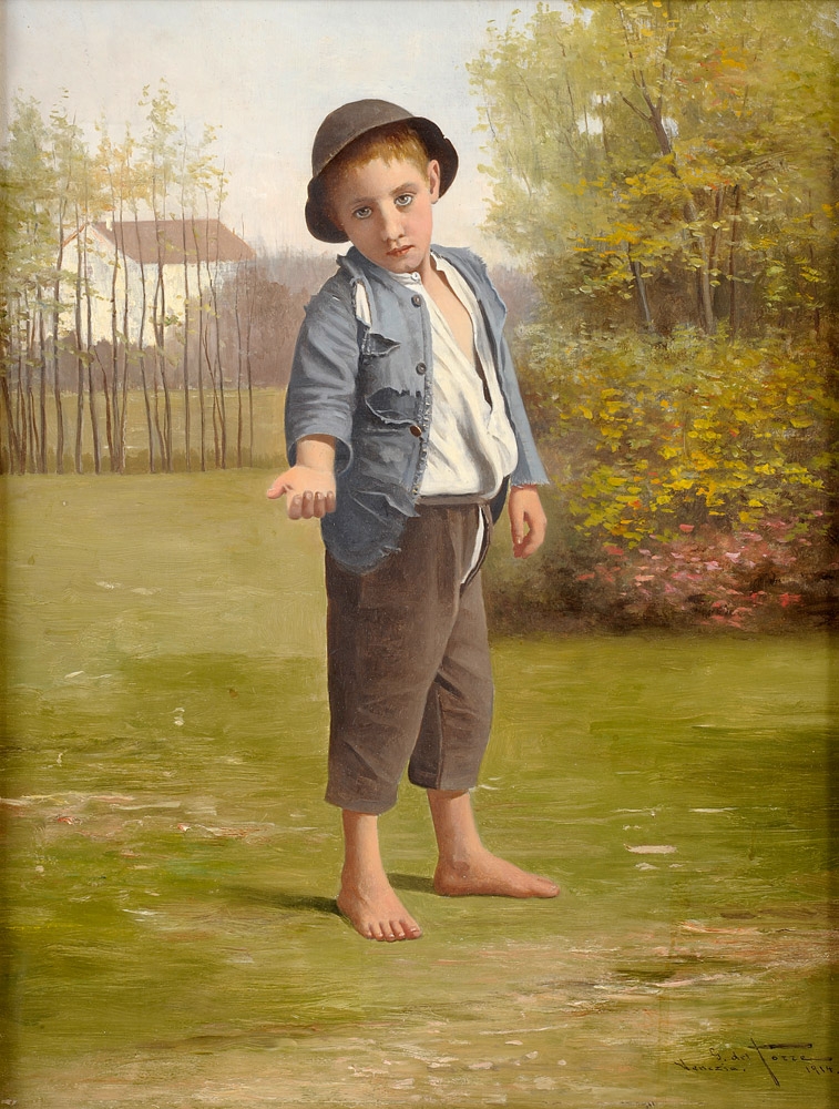 Torre, Giulio del 1856 Romans d´Isanzo - 1932 ebenda Ragazzo Veneziano. Signiert. Datiert: Venezia 1914. Öl/Holz, 44 x 32,5 cm
