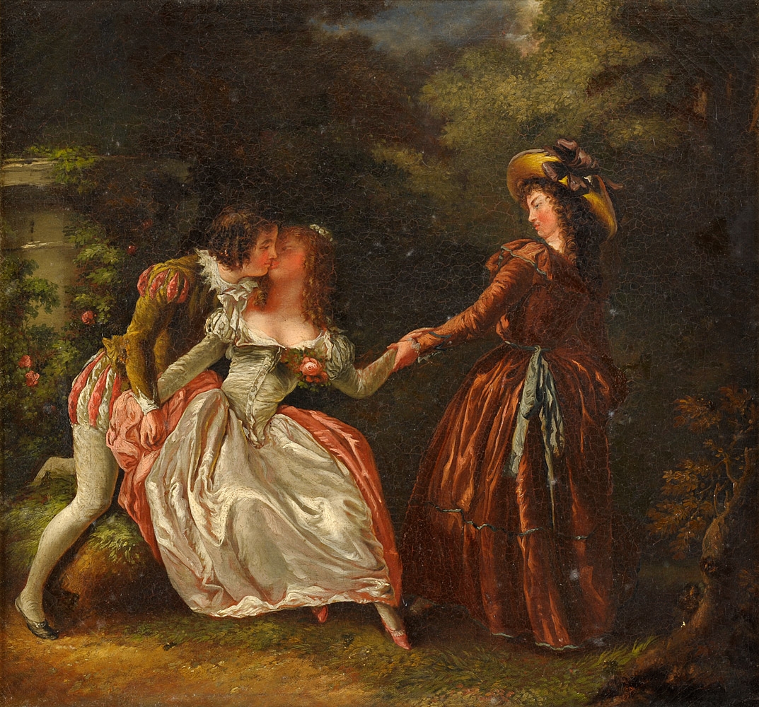 Unbekannter Meister Galante Szene. Öl/Lwd., 40 x 43 cm