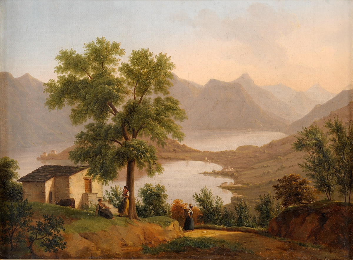 Italienischer Meister Anfang, 19. Jhdt. Zwei Gemälde. Norditalienische Landschaften. Öl/Lwd., je 31,5 x 43 cm