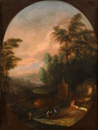Italienischer Meister 17./18. Jhdt. Zwei Gemälde. Bewaldete Landschaften mit Personenstaffage. Öl/Lwd., je 65 x 49 cm
