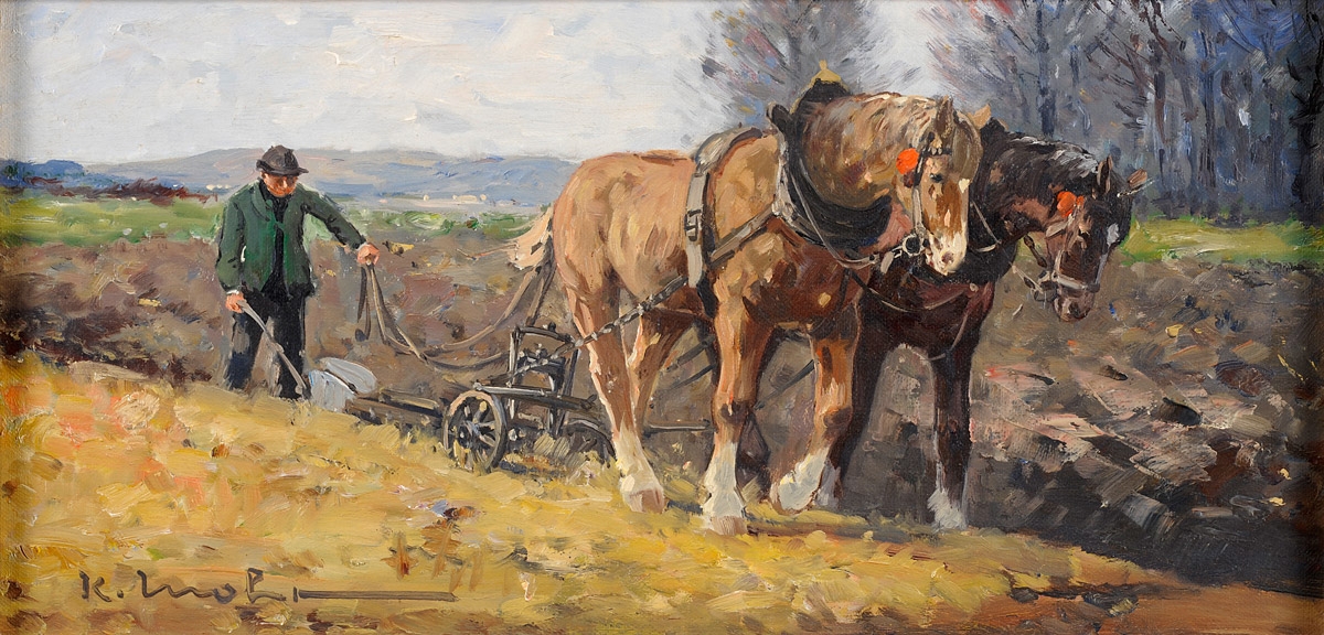 434Mühlig, Albert Ernst 1862 Dresden - 1909 ebenda Frühling im Dorf. Signiert. Öl/Malk., 42 x 32 cm 200 EUR |