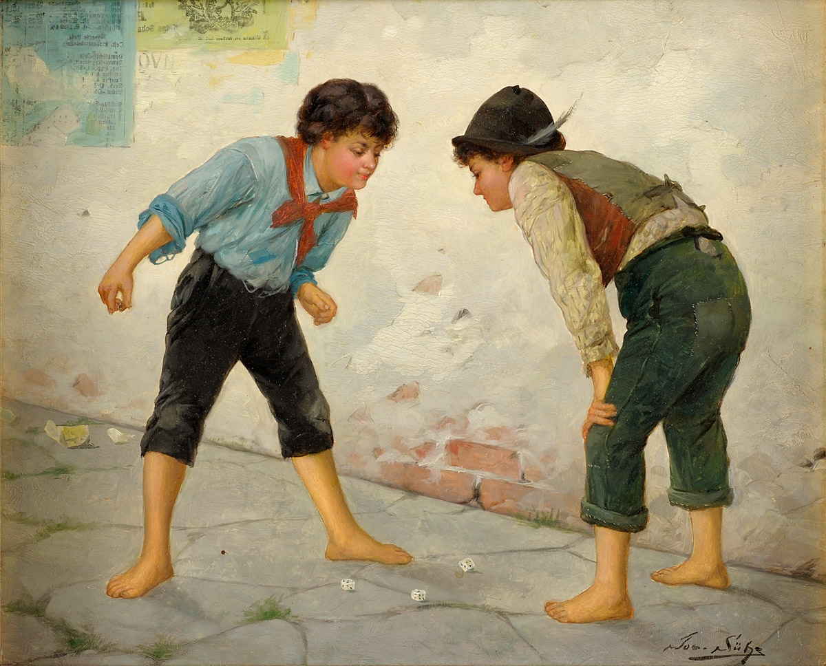 569Unbekannter Meister Ende 19. Jhdt. Kindergruppe auf einer Brücke stehend. Öl/Lwd., 51 x 42 cm 300 EUR |
