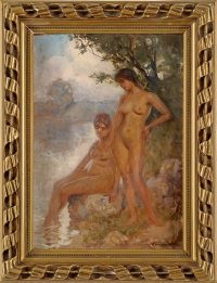 579Süss, Josef Wenzel 1867 Brünn - 1937 Wien Zwei Gemälde. ,,Krieg´´ und ,,Frieden´´. Signiert. Öl/Holz, je 26 x 31,5 cm 800 EUR |