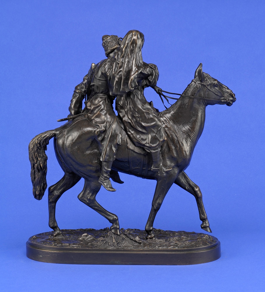 956Lanceray, Evgeni Alexandrovich 1848 Morschansk - 1886 St. Petersburg Kosak mit Mädchen zu Pferd. Signiert. Bronze. Gießerstempel. H 40 cm 3000 EUR |