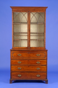 880Schrank Deutsch, Ende 18. Jhdt. Zweitüriger Nussbaumkorpus mit prismierten Ecken. Seitliche Kassettenfelder. Rahmenmarketerie. H 222 cm, B 200 cm, T 64 cm 300 EUR |