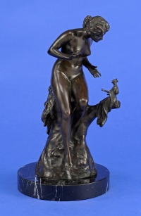 1055Drouot, Edouard 1859 Sommevoire - 1945 Paris Venus. Bronze. Signiert. Marmorsockel. H 57 cm (gesamt) 800 EUR |