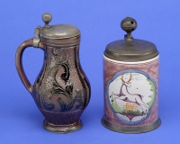1195Vierkantflasche Süddeutsch, Anfang 18. Jhdt. Aallseitig geschliffenes Personendekor. Vergoldet. H 23,5 cm 400 EUR |