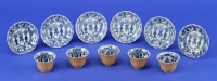 1186Fünf Koppchen mit Untertassen China 19. Jhdt. Unterglasurblau staffiert. Mokkabraune Wandung. Marken im Doppelkreis. 50 EUR |