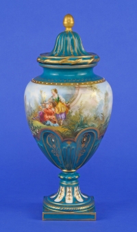1184Deckelvase im Sèvres-Stil Ende 19. Jhdt. Louis XVI.-Form. Fein gemalte Portraitmedaillons. Ziervergoldet. Sèvres-Marke. H 31 cm 900 EUR |