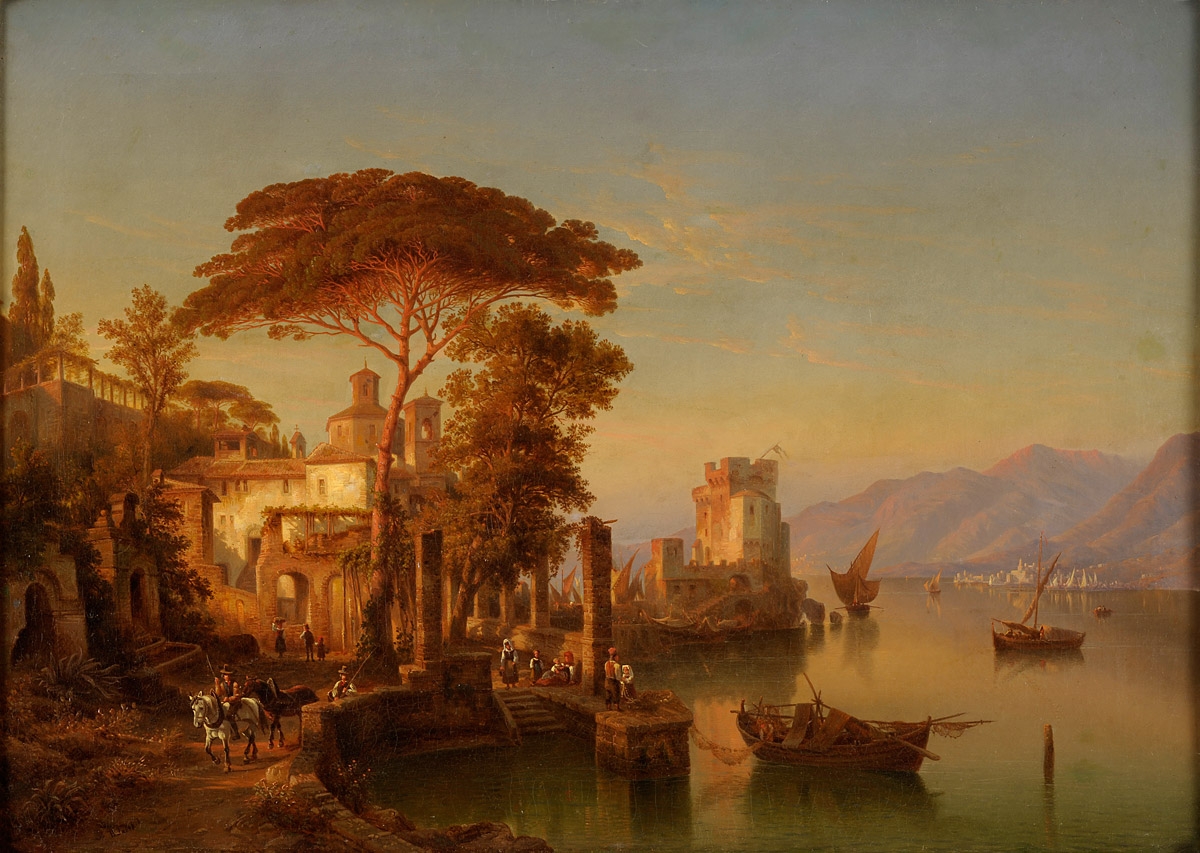 Hartung, Heinrich 1851 Koblenz - 1919 Koblenz Italienische Küstenlandschaft. Monogrammiert. Öl/Lwd., 37 x 29,5 cm