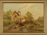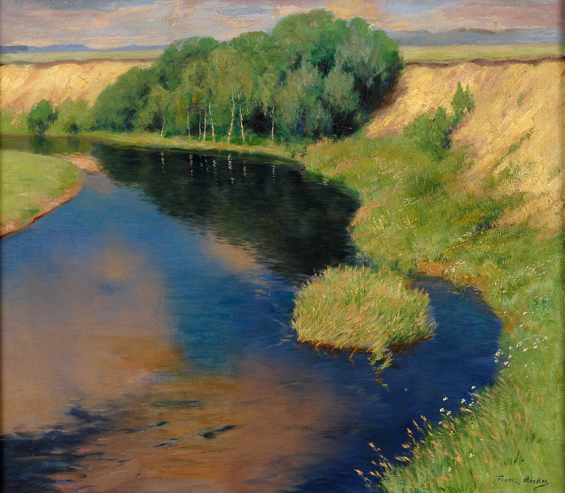 Hecker, Franz 1870 Bersenbrück - 1944 Osnabrück Sommerliche Flusslandschaft. Signiert. Öl/Lwd., 70 x 80 cm