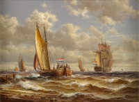 Achenbach, Andreas 1815 Kassel - 1910 Düsseldorf Amsterdamer Hafenszene. Signiert. Datiert (18) 85. Öl/Lwd./doubl., 54 x 64 cm