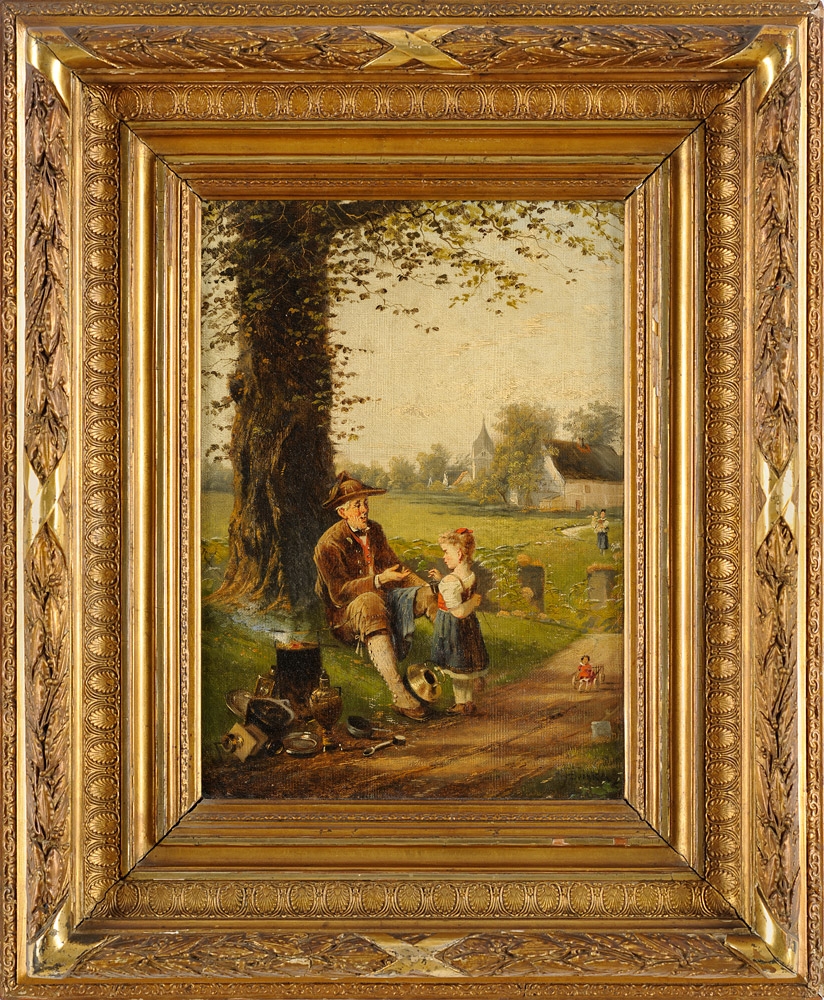 103Beinke, Fritz 1842 Düsseldorf - 1907 Düsseldorf Der Tandler auf dem Dorf. Signiert. Datiert (18) 84. Öl/Lwd./doubl., 86 x 68 cm 4000 EUR |