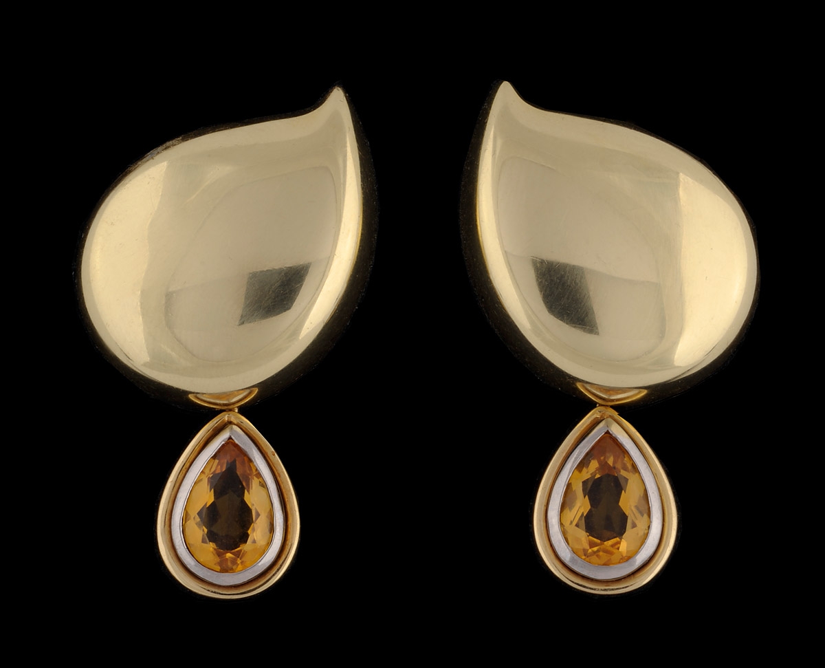 1327Ein Paar Ohrclips mit Citrinanhängern 750-Gelbgold. Auktion: Donnerstag, 05.12.2013 ab 12:00 400 EUR |