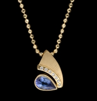 1363Anhänger mit Kette 585-Gelbgold, sieben Brillanten und Safir? Auktion: Donnerstag, 05.12.2013 ab 12:00 200 EUR |