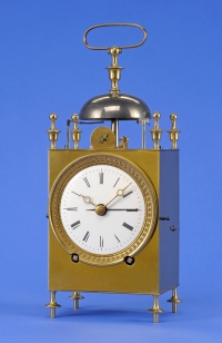 1677Kleine Pendule Frankreich um 1820 Vergoldetes und patiniertes Bronzegehäuse. Taschenuhrwerk. H 24,5 cm. Auktion: Freitag, 06.12.2013 ab 10:00 200 EUR |