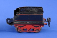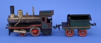 1634Dampflok mit Tender von George Carette & Co. Nürnberg, Anfang 20. Jhdt. Blech und Eisen, lackiert. Firmenlogo. L 41 cm (gesamt). Auktion: Freitag, 06.12.2013 ab 10:00 150 EUR |