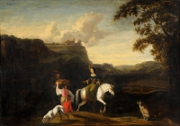 269Unbekannter Meister 17. Jhdt. Bewaldete Landschaft mit Reisenden. Öl/Lwd./doubl., 108 x 100 cm 300 EUR |