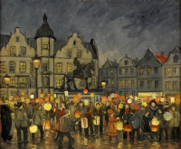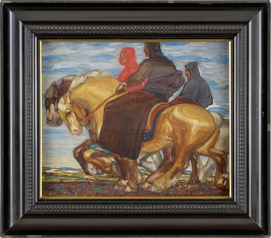 292Corde, Walter 1876 Köln - 1944 Die apokalyptischen Reiter. Signiert. Datiert (19) 21. Mischt./Holz, 37 x 46 cm 150 EUR |