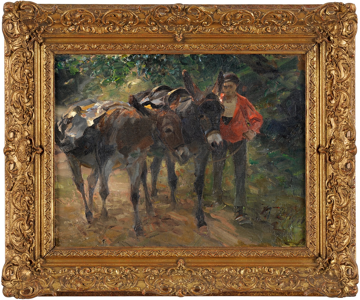252Zügel, Heinrich von 1850 Murrhardt - 1941 München Auf dem Weg zum Wolkenhof. Signiert. Öl/Lwd., 46,5 x 60 cm 2000 EUR |