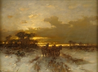 254Wolf, Georg 1882 Niederhausbergen - 1962 Uelzen Einspannen der Pferde im Winter. Signiert. Öl/Lwd., 40 x 56 cm 150 EUR |