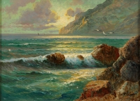 263Thornley, William Anslow ca. 1858 - 1898 Küstenszene mit Fischerbooten. Signiert. Öl/Lwd./doubl., 30 x 40 cm 200 EUR |