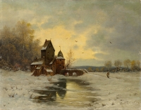 275Oswald, Fritz 1878 Zürich - 1966 Starnberg Winterliche Flusslandschaft. Signiert. Öl/Lwd., 70 x 78 cm 200 EUR |