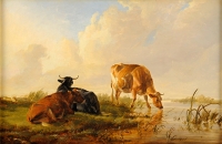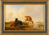 291Cooper, Thomas Sidney 1803 Canterbury - 1902 London Flusslandschaft mit weidenden Kühen. Signiert. Datiert 1851. Öl/Holz, 40 x 61 cm 1200 EUR |