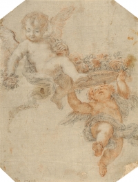 255Zampieri, Nico (Il Domenichino) 1581 Bologna - 1691 Neapel (zugeschr.) Zwei Putti. Restsignatur. Röthel und Kreidezeichnung. 32 x 24 cm 150 EUR |