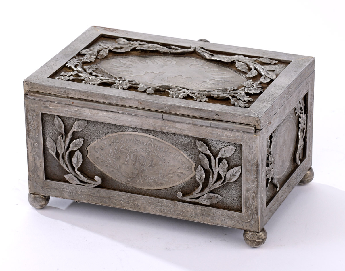1204Seltene, versilberte Eisenkassette zur Industrie- und Gewerbeausstellung Düsseldorf 1902 100 EUR |