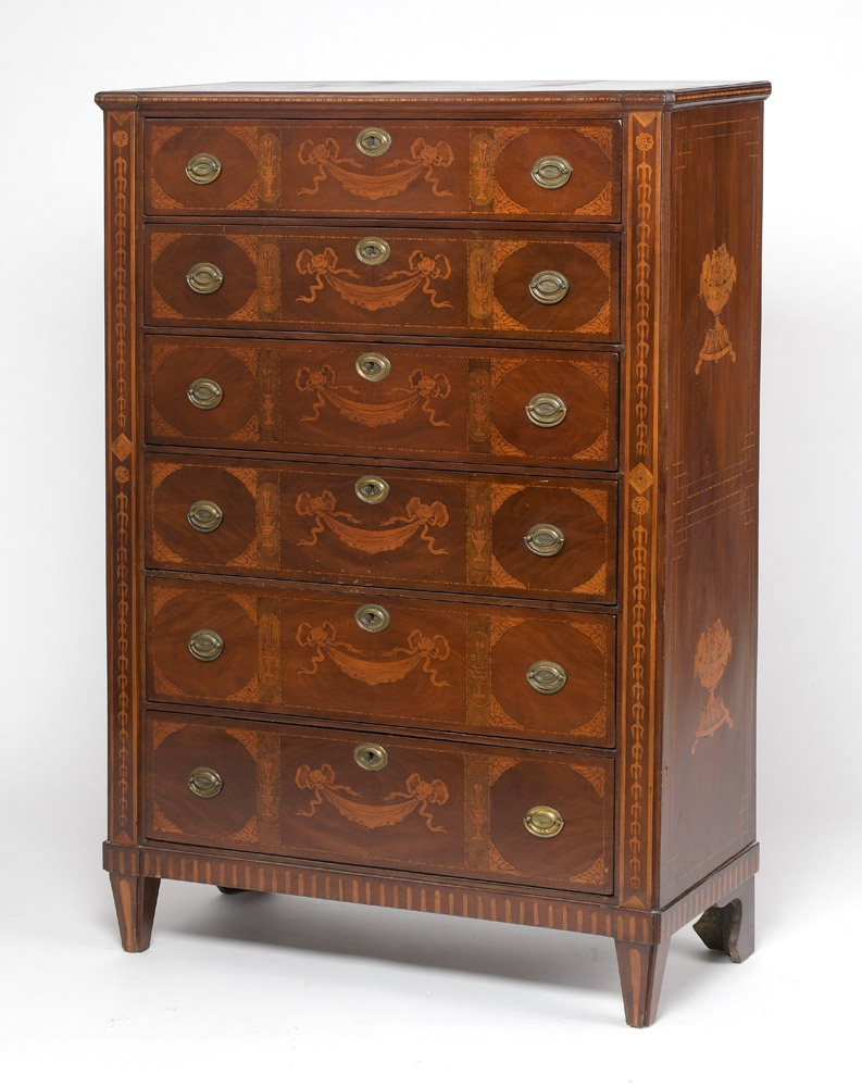 1203Sechsschübige Herrenkommode Niederlande, Anfang 19. Jhdt. 100 EUR |