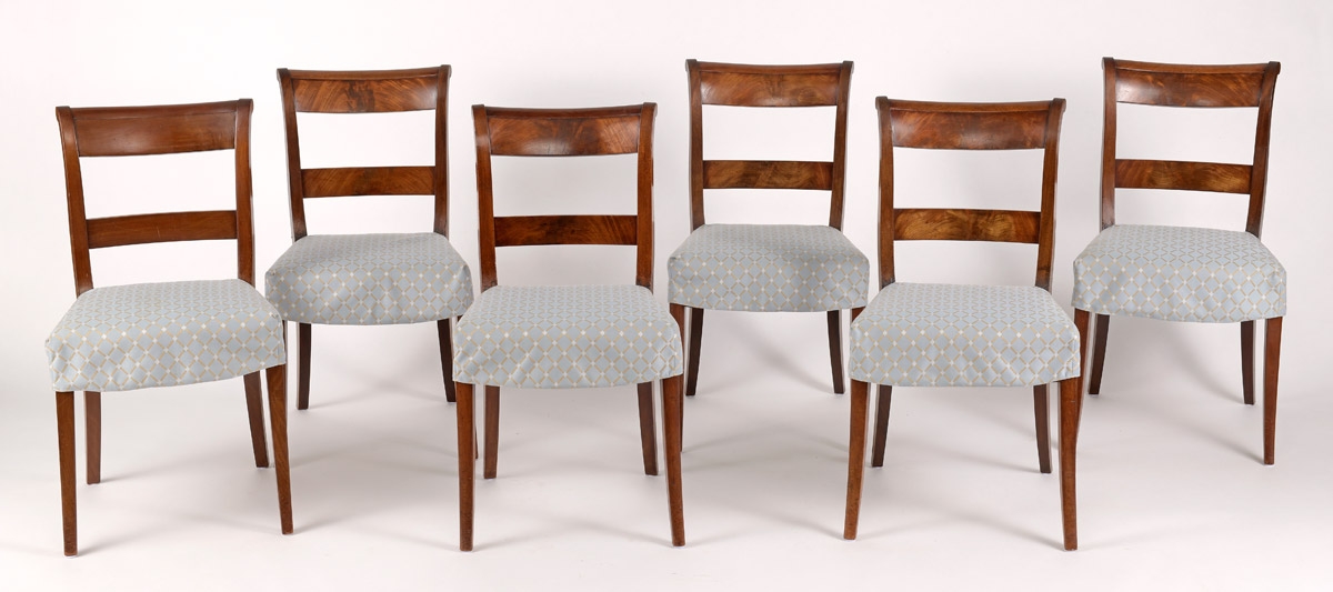 1179Satz von sechs Stühlen und ein Paar Armlehnstühlen Erstes Drittel 19. Jhdt. 150 EUR |