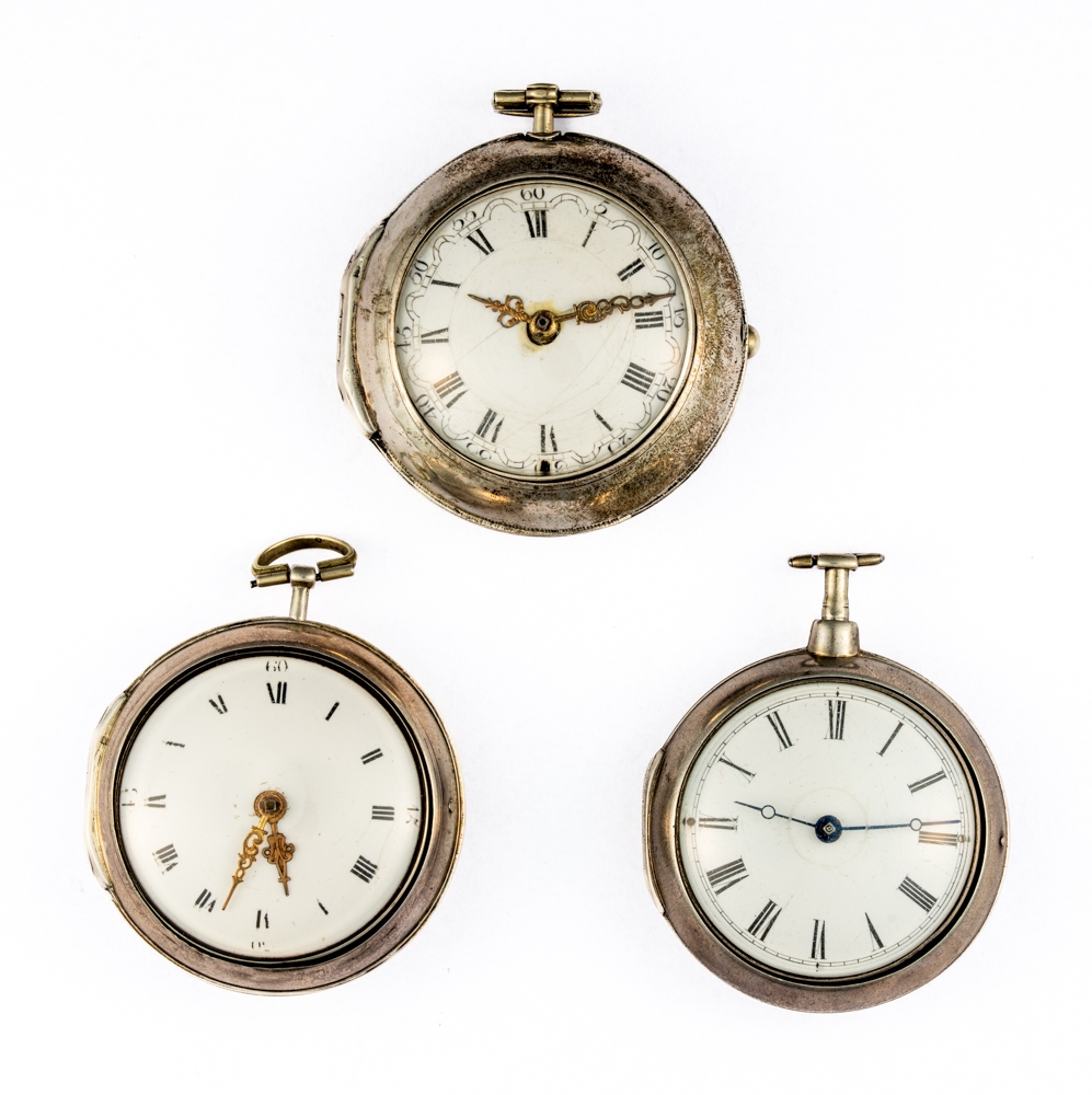 174Drei silberne Spindeltaschenuhren mit Übergehäusen Um 1800-1825 180 EUR |