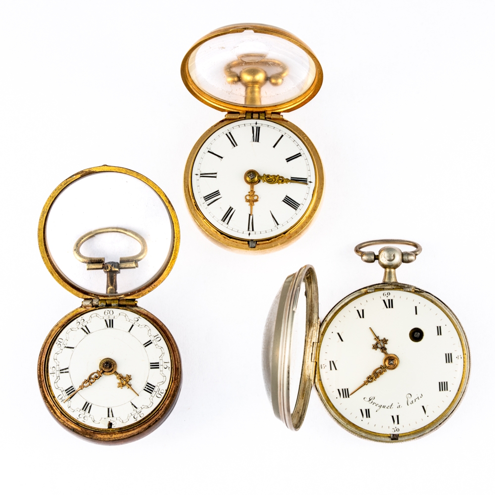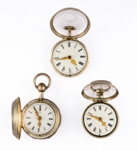 177Drei Spindeltaschenuhren mit vergoldeten Gehäusen Um 1775 bzw. 1800 350 EUR |