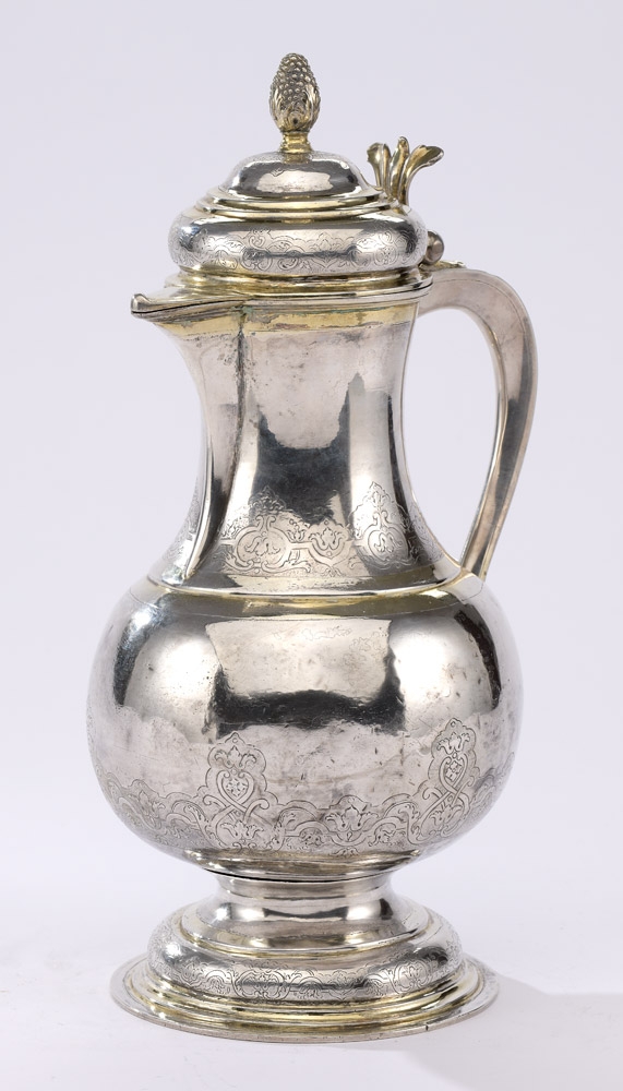615Seltene Schenkkanne von Gabriel Giese, Anklam (vor 1945 Kreis Stettin) 1710-1714 1500 EUR |