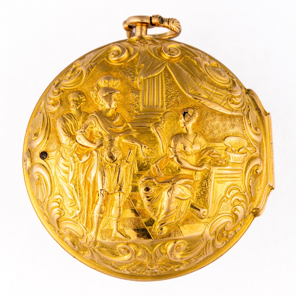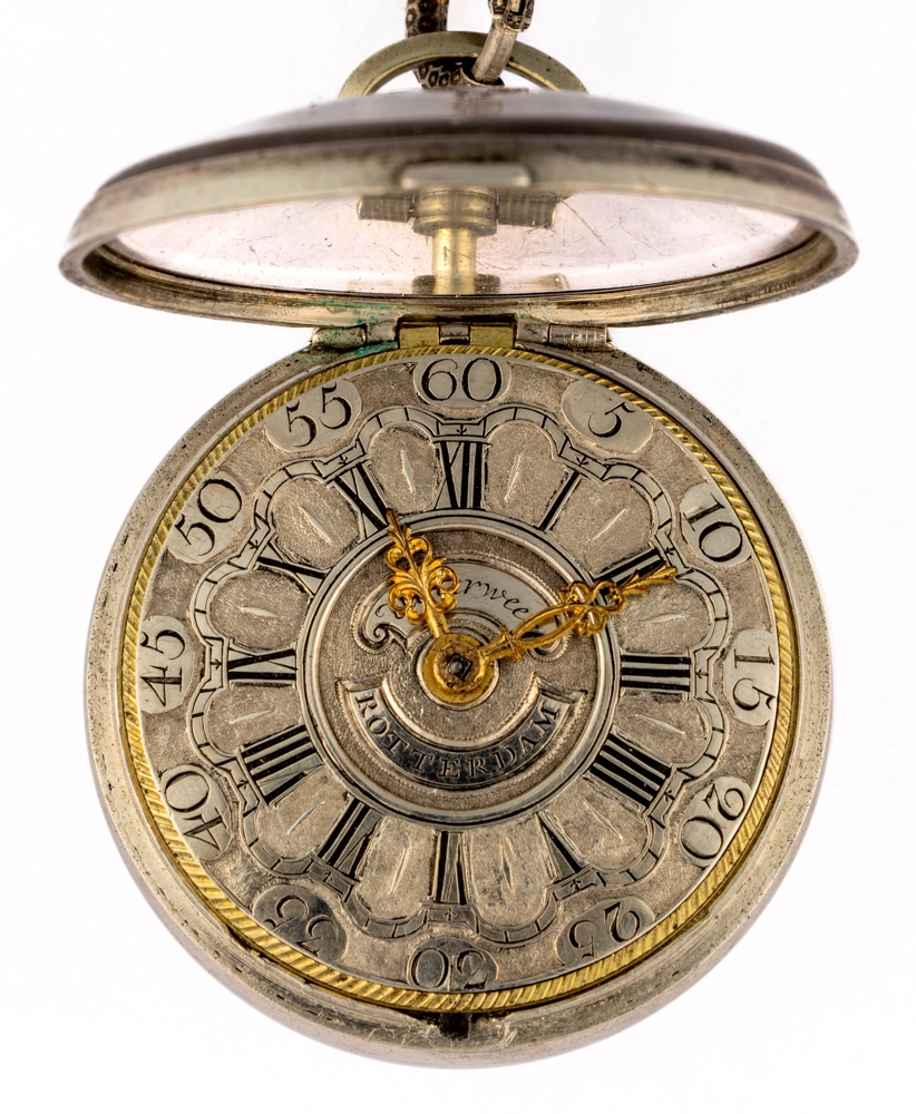 75Holländische Spindeltaschenuhr mit Scheinpendel von Pieter Uyterweer Rotterdam um 1710 250 EUR |