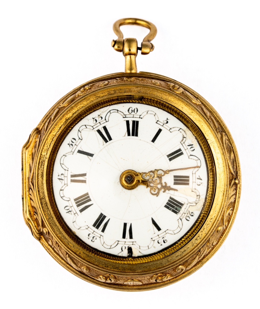 80Spindeltaschenuhr mit Übergehäuse von Johann Nikolaas Delle Augsburg um 1750 200 EUR |