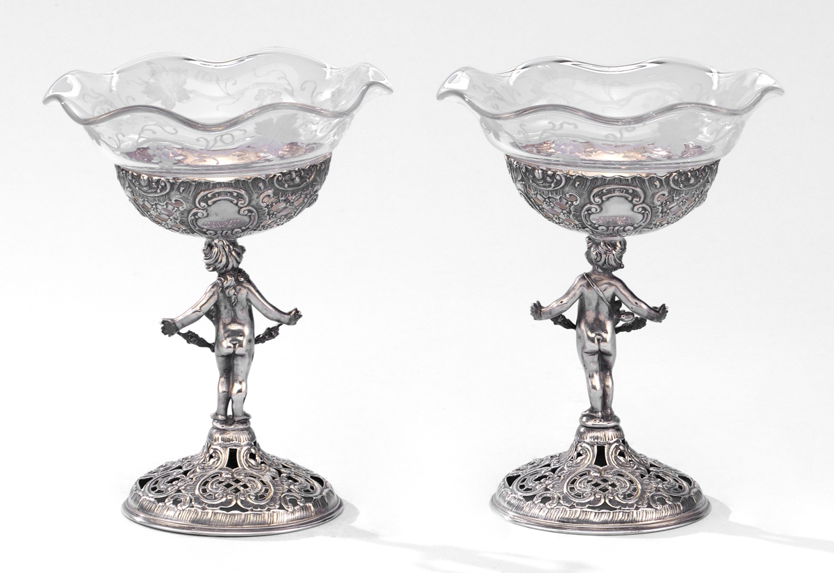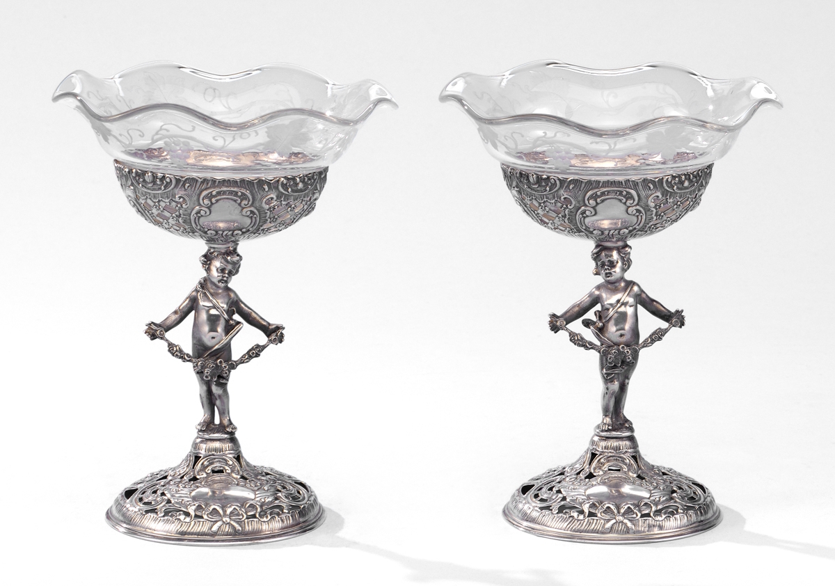 655Ein Paar Aufsatzschalen Hanau, Ende 19. Jhdt. 200 EUR |