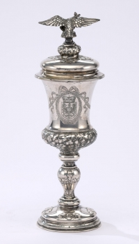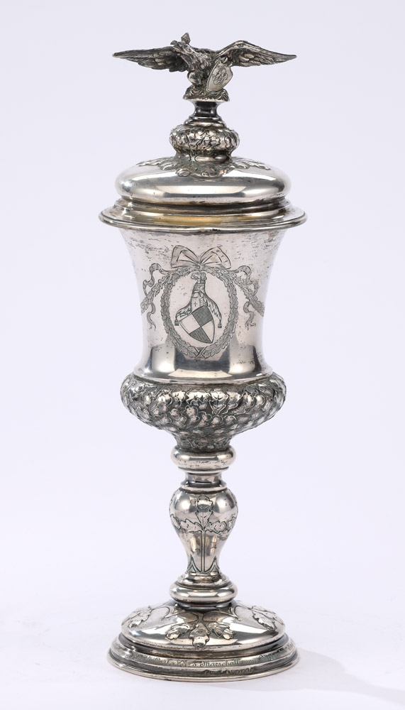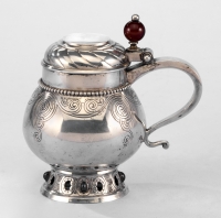 639Deckelkrug mit Karneolkugel und Safircabochons Russland 19. Jhdt. 200 EUR |