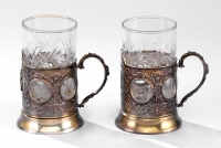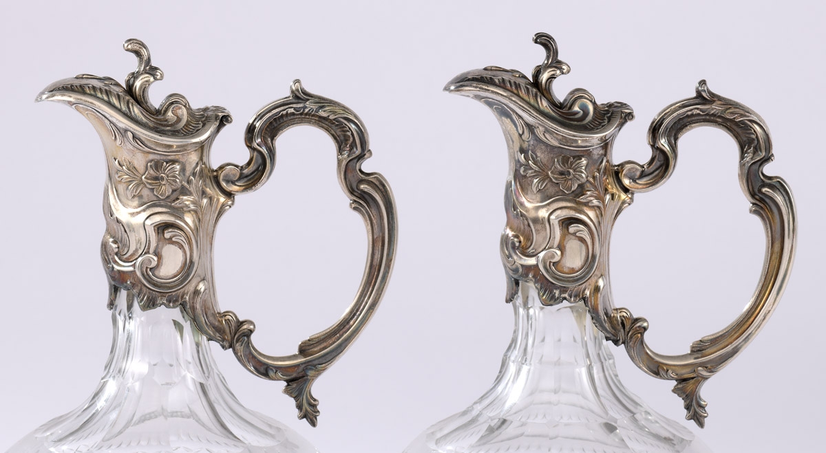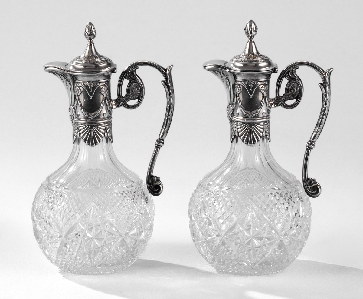 650Zwei russische Kristallkaraffen mit Silbermontierung Um 1900 150 EUR |