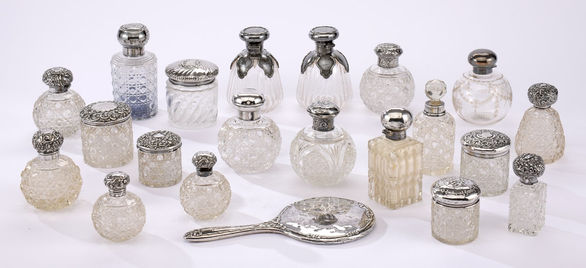 647Sammlung von 20 Flakons und Deckeldosen mit Silbermontierung 150 EUR |