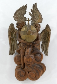 922Ein Paar geflügelter Engel auf Wolkenband mit Reichsapfel Flämisch um 1700 300 EUR |