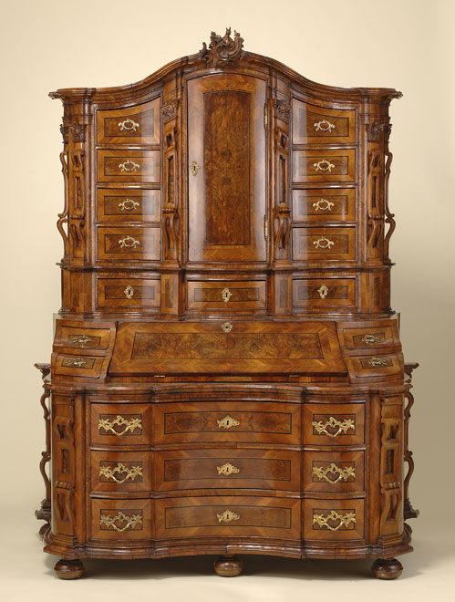 645Kommode Schleswig-Holstein, 18. Jhdt.Vierschübiger, frontal geschweifter Korpus auf vergoldetem Fußgestell. Ergänzungen. Nußbaum. H 130 cm, B 128 cm, T 68 cm 1200 EUR |