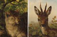 345Schmitz, Anton 1855 GrimmlinghausenZwei Gemälde. Wildkatze. Rehbock. Signiert. Öl/Lwd., 28 x 22 cm bzw. 24 x 18 cm 120 EUR |