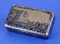 1669Niello-Tabatière Russland, Ende 19. Jhdt.Ansichten von St. Petersburg. 84-Zolotnik. Marken. H 2,5 cm, B 8,5 cm, T 5,5 cm 500 EUR |