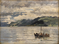 390Normann, Adelsteen 1848 Bodö - 1918 OsloFjordlandschaft mit Fischerboot. Signiert. Öl/Lwd./Holz, 30,5 x 40,5 cm 200 EUR |