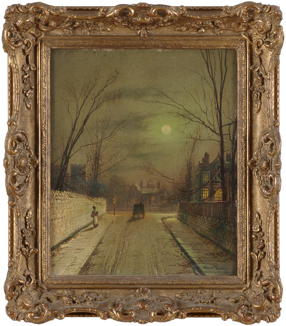 653Undeutlich signiert 19./20. Jhdt.Abendliche Straßenszene mit regem Treiben. Öl/Lwd., 86 x 145 cm 800 EUR |